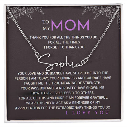 To My Mom Signature Style Name Necklace Message Card for All