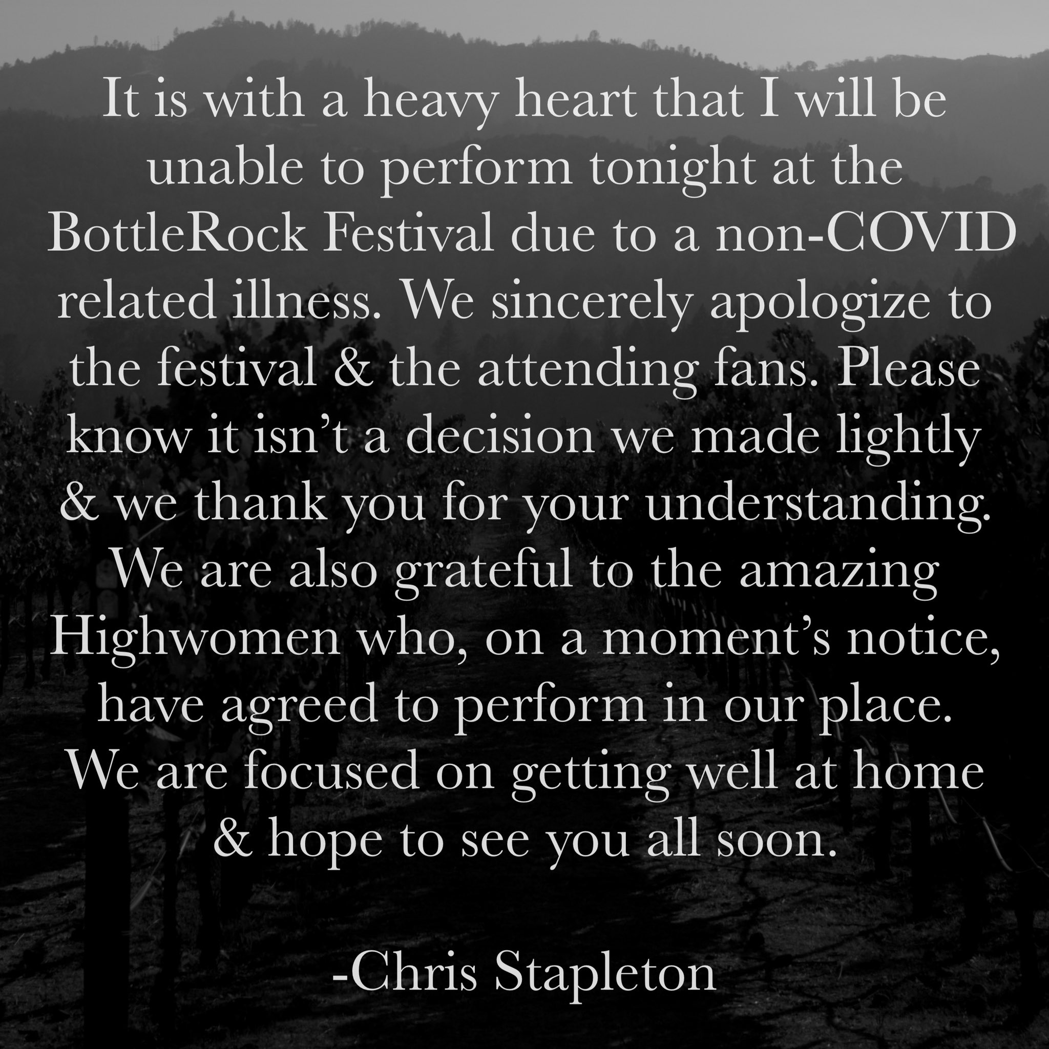 Chris Stapleton on X: “It is with a heavy heart that I will be